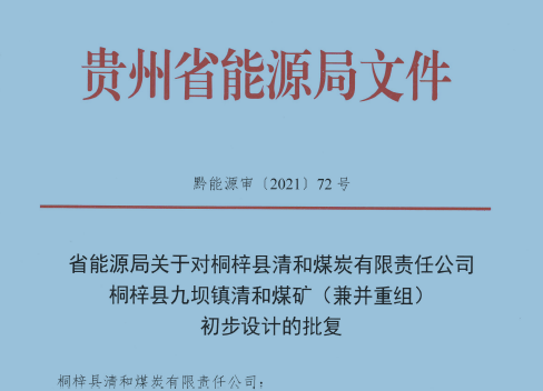貴州耀輝礦業發展有限公司桐梓縣九壩鎮清和煤礦初步設計