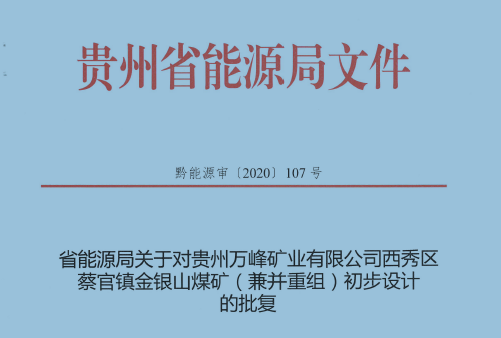 貴州萬峰礦業有限公司西秀區蔡官鎮金銀山煤礦(兼并重組)初步設計