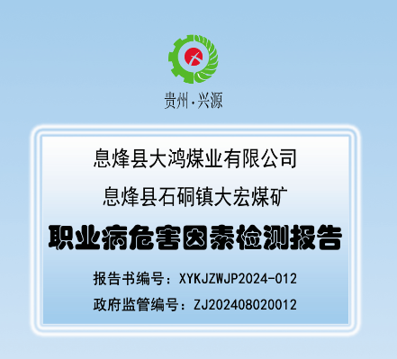 息烽縣石硐鎮大宏煤礦職業病危害因素檢測報告