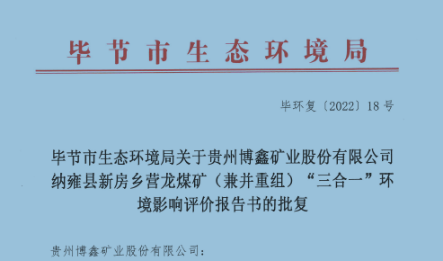 貴州博鑫礦業股份有限公司納雍縣新房鄉營龍煤礦(兼并重組)“三合一”環境影響報告書