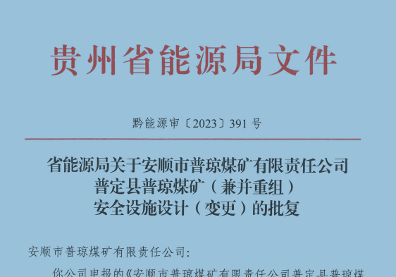 普定縣普瓊煤礦(兼并重組) 安全設施設計(變更)