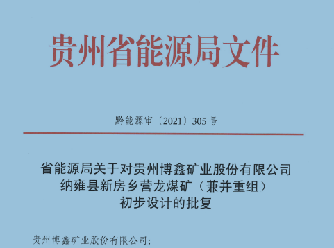 貴州博鑫礦業(yè)股份有限公司納雍縣新房鄉(xiāng)營龍煤礦(兼并重組)初步設(shè)計(jì)