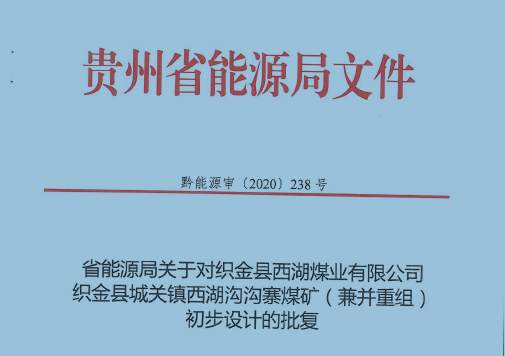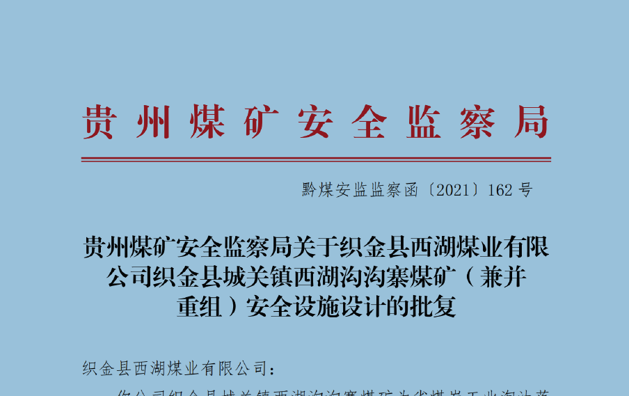 織金縣城關鎮西湖溝溝寨煤礦安全設施設計(變更)