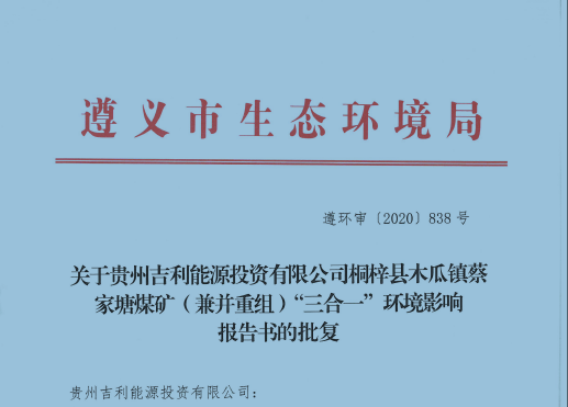 桐梓縣木瓜鎮蔡家塘煤礦45 萬ta(兼并重組)項目“三合一”環境影響報告