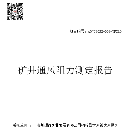 桐梓縣大河鎮(zhèn)大河煤礦礦井通風(fēng)阻力測(cè)定