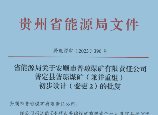 普定縣普瓊煤礦(兼并重組)初步設計(變更2)
