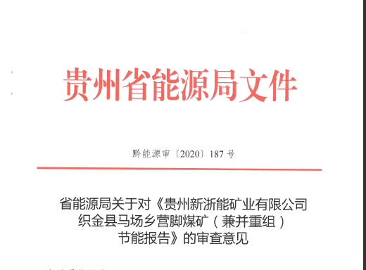 織金縣馬場鄉營腳煤礦(兼并重組)節能報告