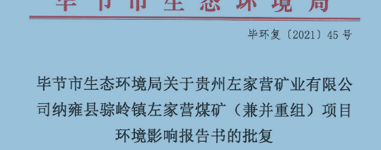貴州左家營礦業有限公司納雍縣骔嶺鎮 左家營煤礦(兼并重組)項目“三合一”環境影響報告書