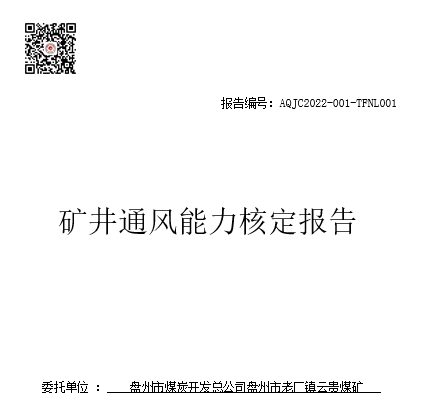 盤州市老廠鎮云貴煤礦礦井通風能力核定