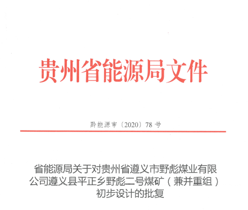 遵義縣平正鄉野彪二號煤礦(兼并重組)初步設計