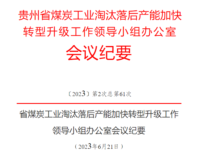 第61次省煤炭工業淘汰落后產能加快轉型升級工作領導小組辦公室會議紀要