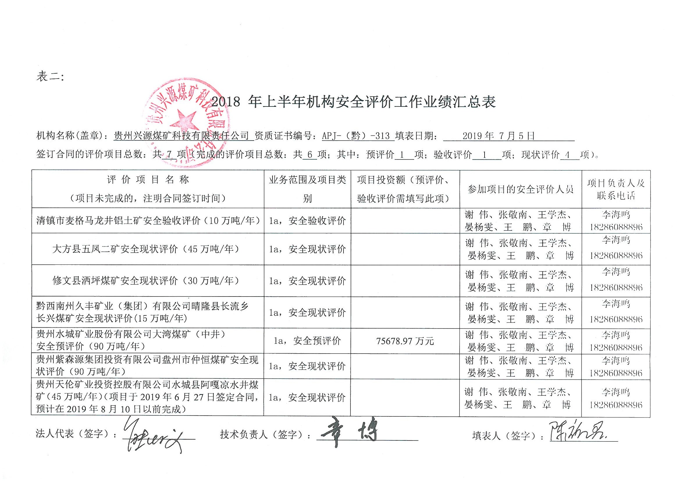 2018年上半年機構安全評價工作業績匯總表
