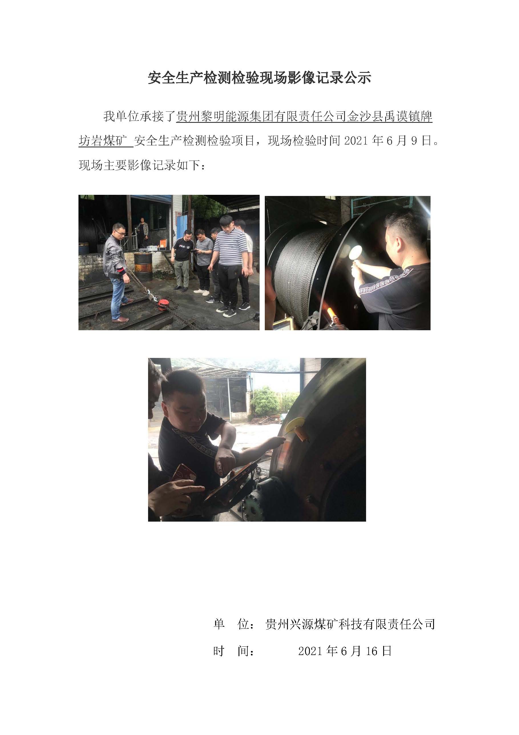 安全生產檢測檢驗現(xiàn)場影像記錄公示【貴州黎明能源集團有限責任公司金沙縣禹謨鎮(zhèn)牌坊巖煤礦】