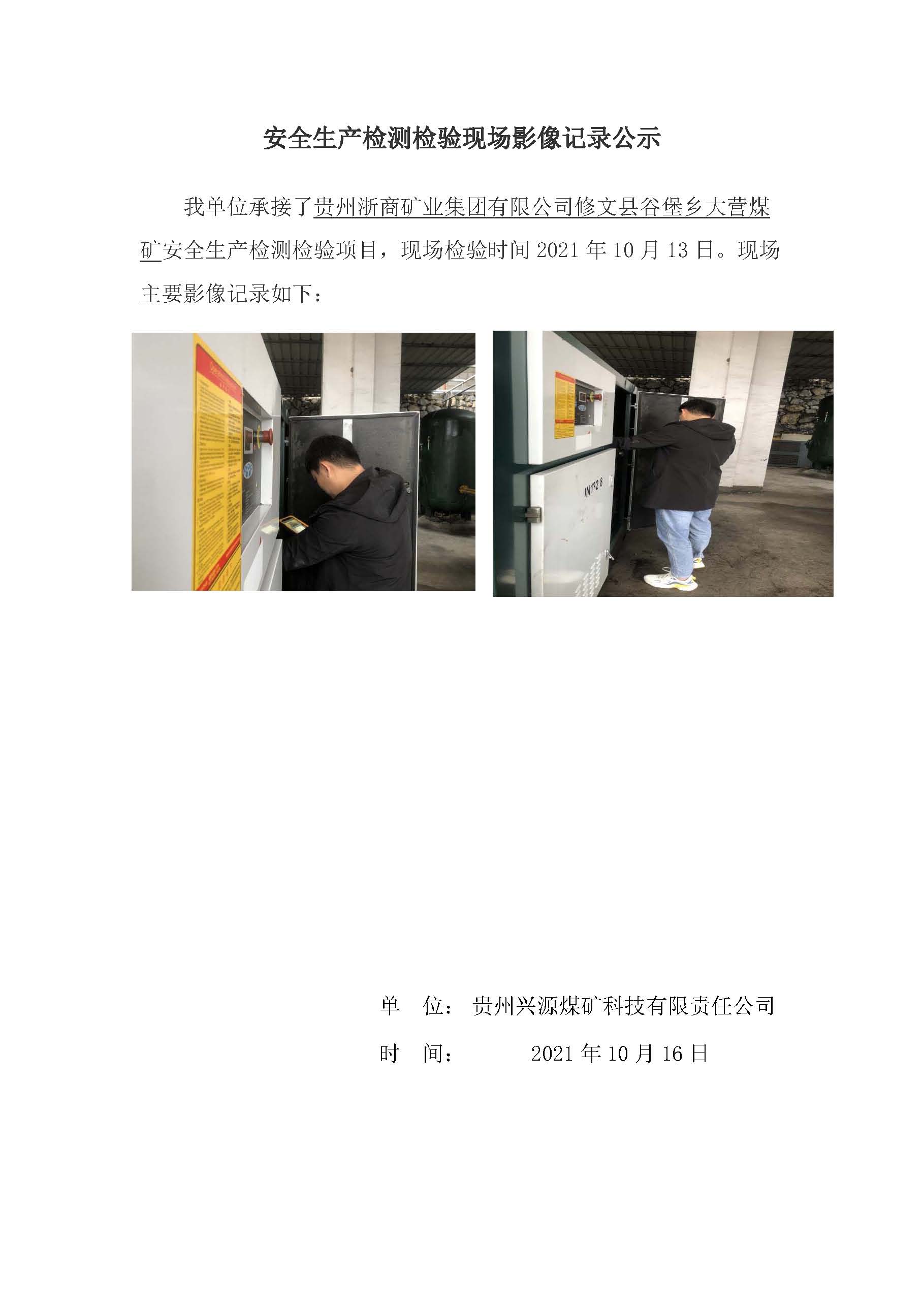 安全生產檢測檢驗現場影像記錄公示【貴州浙商礦業集團有限公司修文縣谷堡鄉大營煤礦】