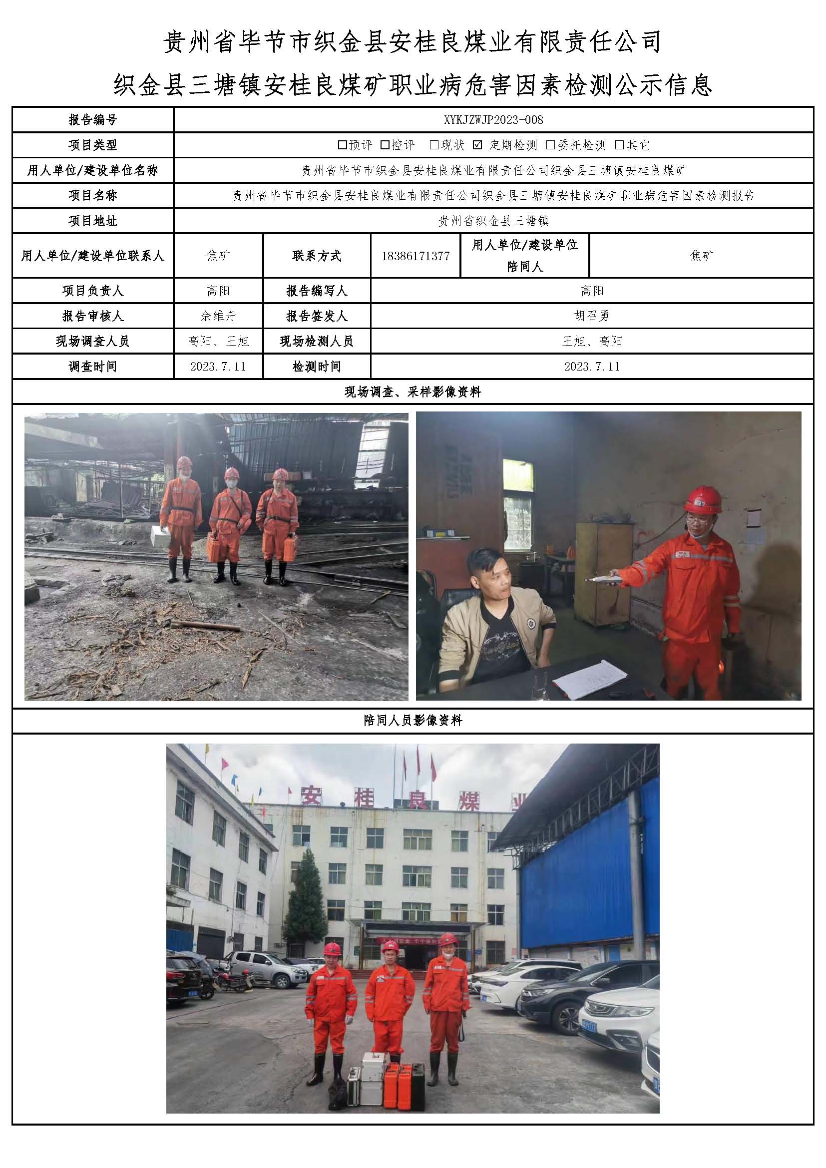 貴州省畢節(jié)市織金縣安桂良煤業(yè)有限責任公司織金縣三塘鎮(zhèn)安桂良煤礦職業(yè)病危害因素檢測公示信息
