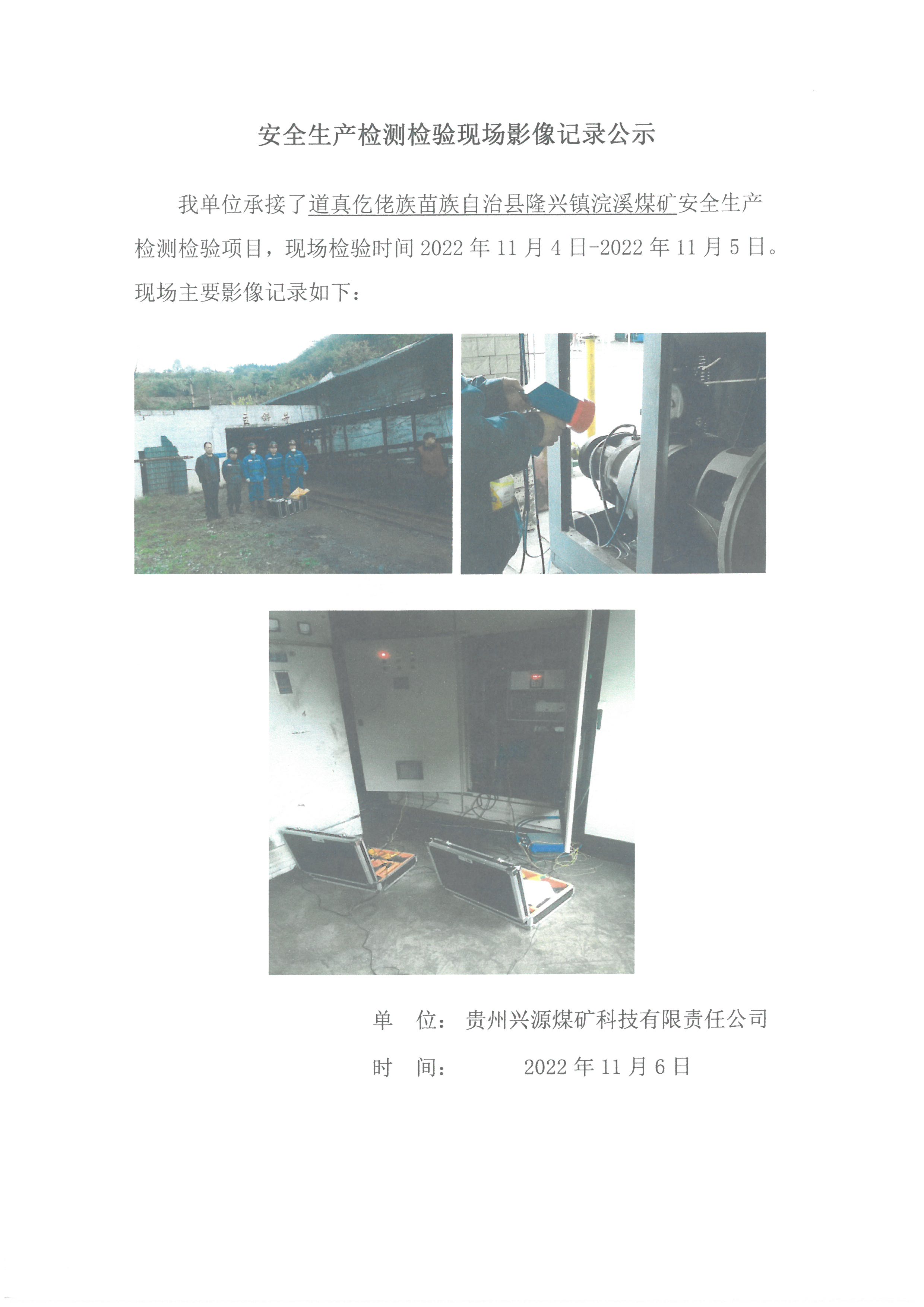 安全生產檢測檢驗現場影像記錄公示【貴州黎明能源集團有限責任公司金沙縣禹謨鎮牌坊巖煤礦】