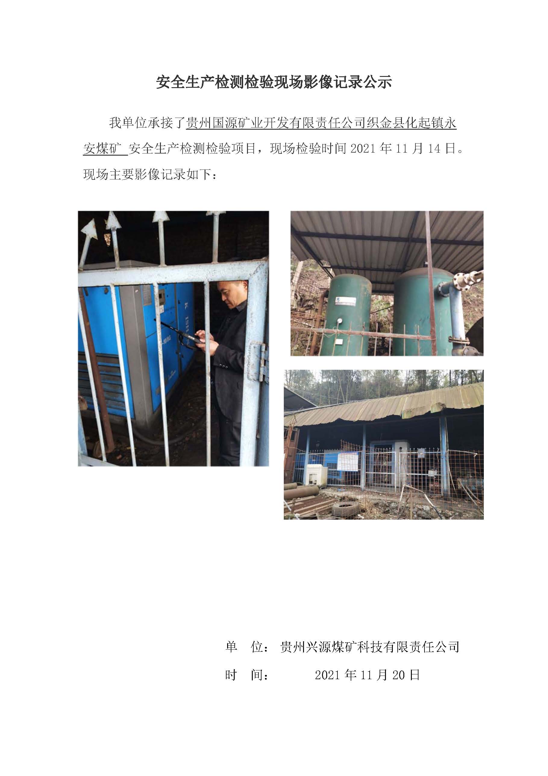 安全生產檢測檢驗現場影像記錄公示【貴州國源礦業開發有限責任公司織金縣化起鎮永安煤礦】