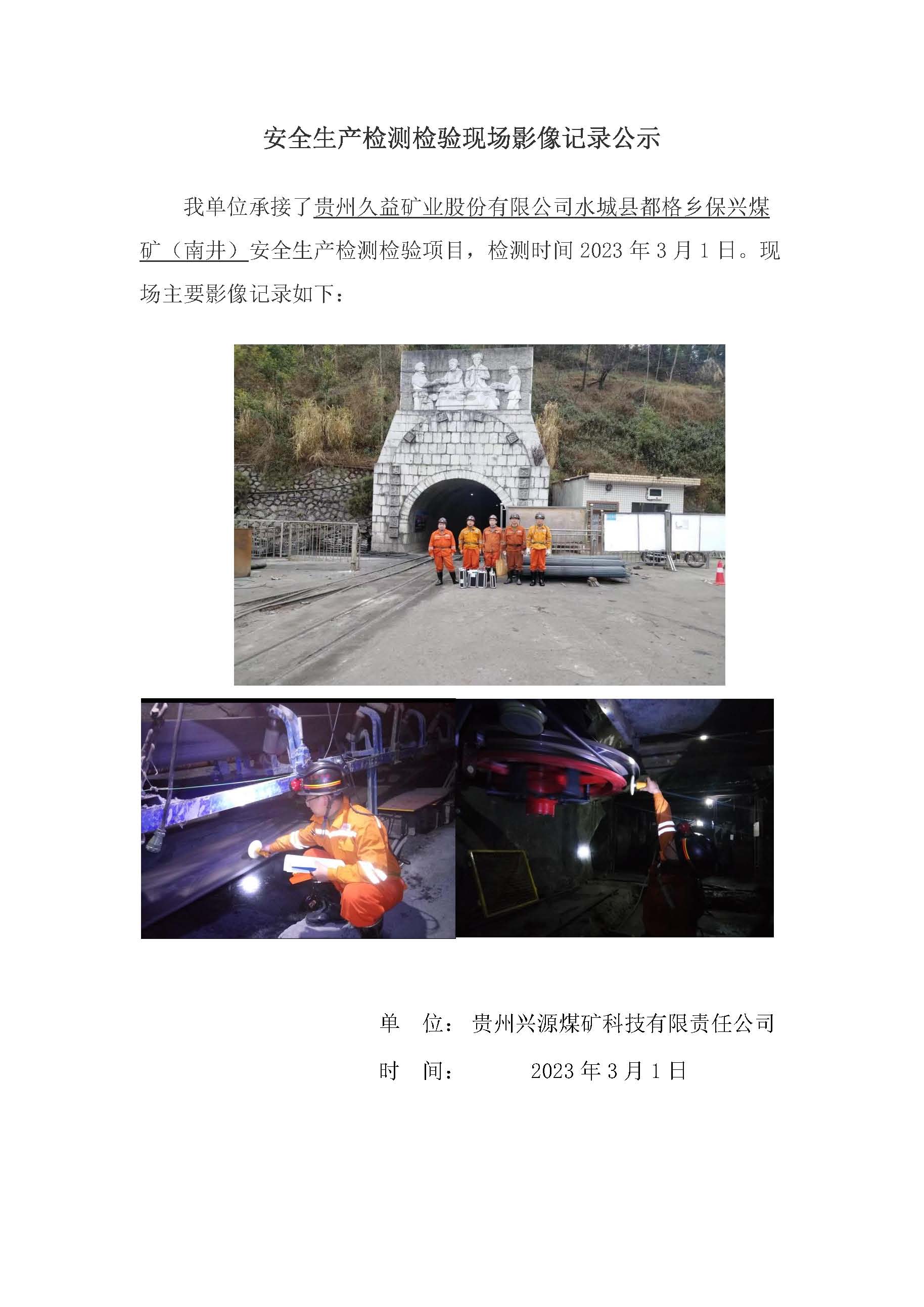 安全生產檢測檢驗現(xiàn)場影像記錄公示【貴州久益礦業(yè)股份有限公司水城縣都格鄉(xiāng)保興煤礦(南井)】