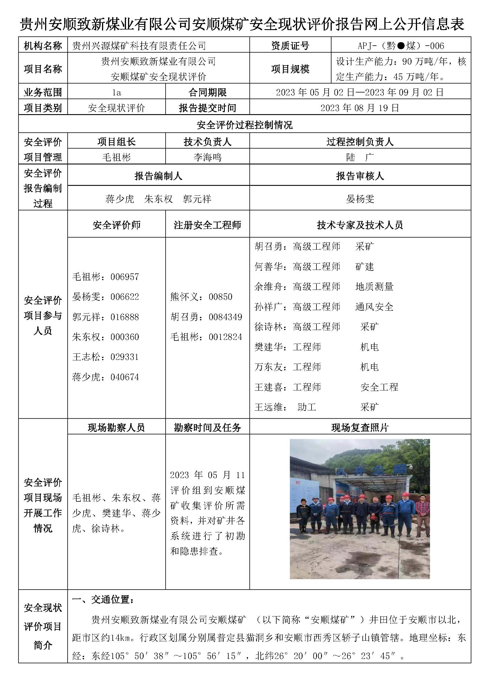 貴州安順致新煤業(yè)有限公司安順煤礦安全現(xiàn)狀評(píng)價(jià)報(bào)告網(wǎng)上公開(kāi)信息表