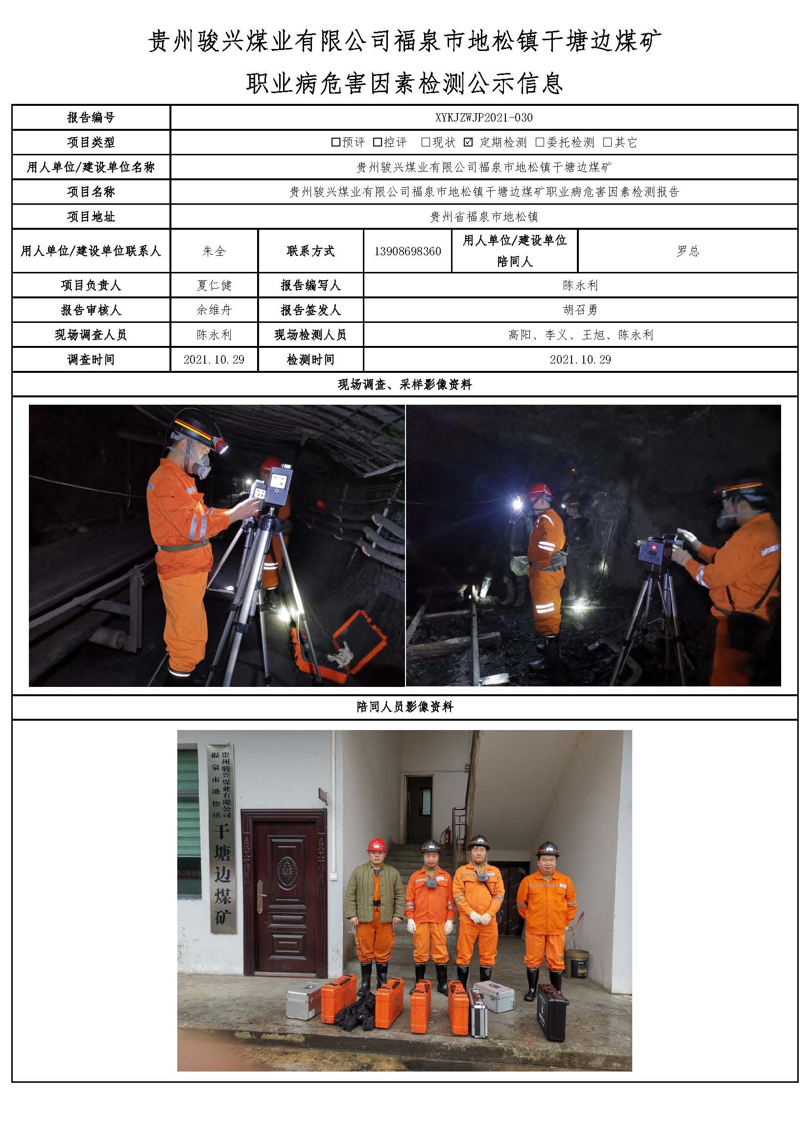貴州駿興煤業有限公司福泉市地松鎮干塘邊煤礦 職業病危害因素檢測公示信息