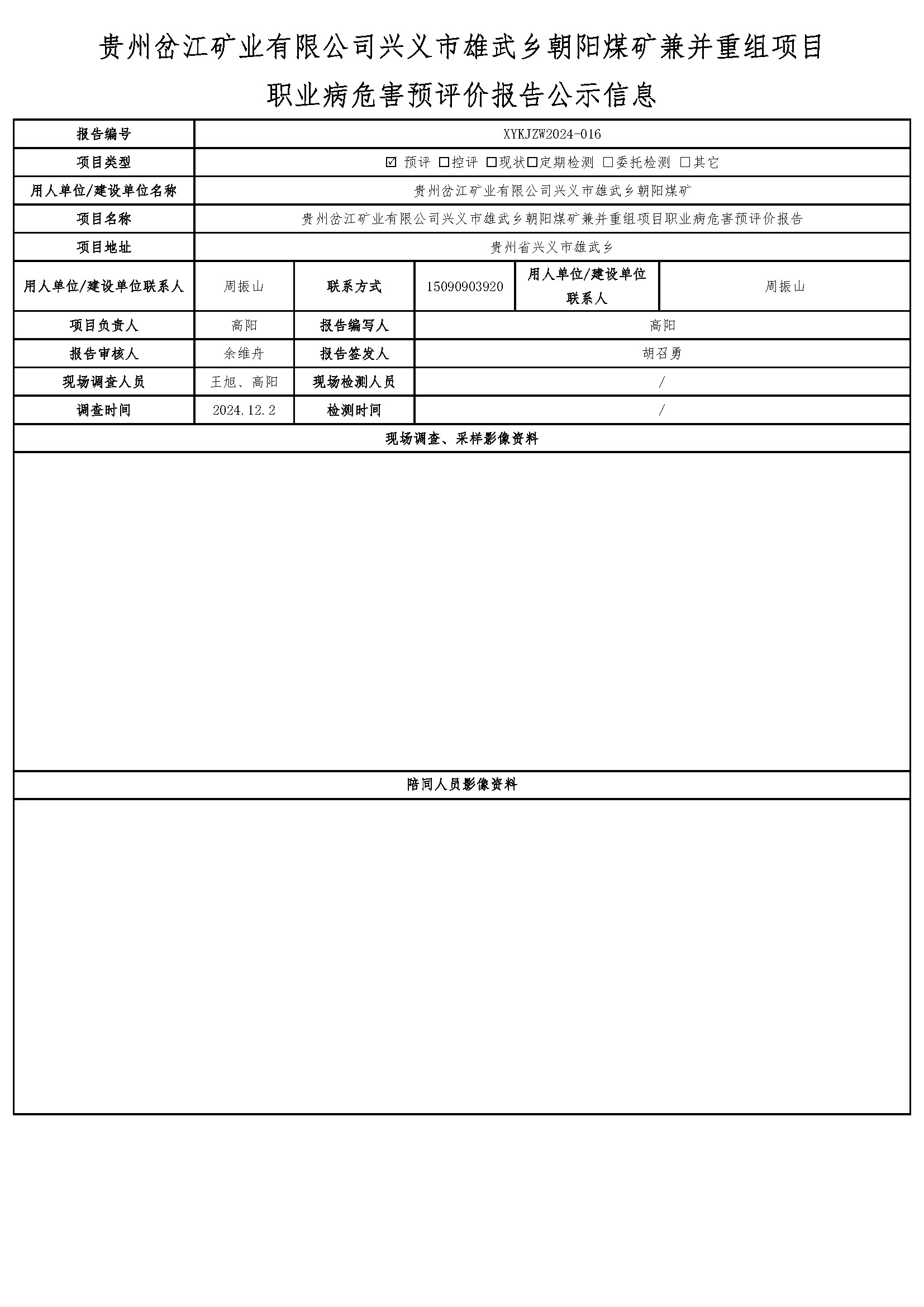貴州岔江礦業(yè)有限公司興義市雄武鄉(xiāng)朝陽煤礦兼并重組項目 職業(yè)病危害預評價報告公示信息