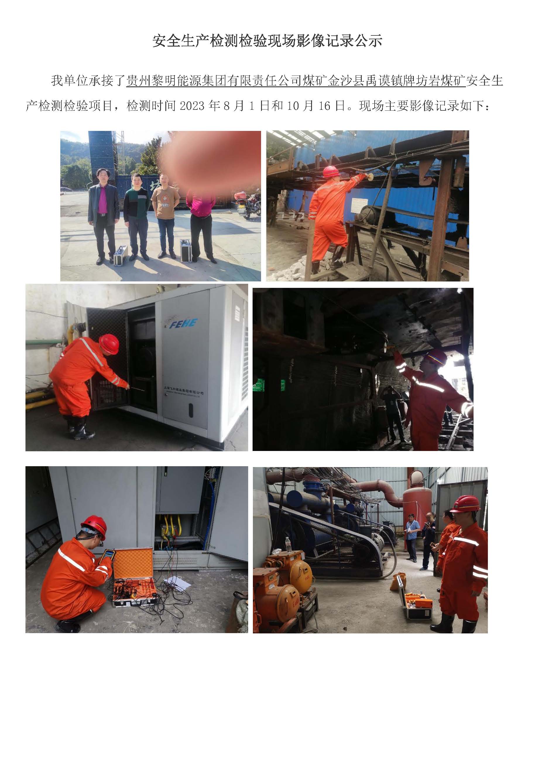 安全生產檢測檢驗現場影像記錄公示(貴州黎明能源集團有限責任公司煤礦金沙縣禹謨鎮牌坊巖煤礦)