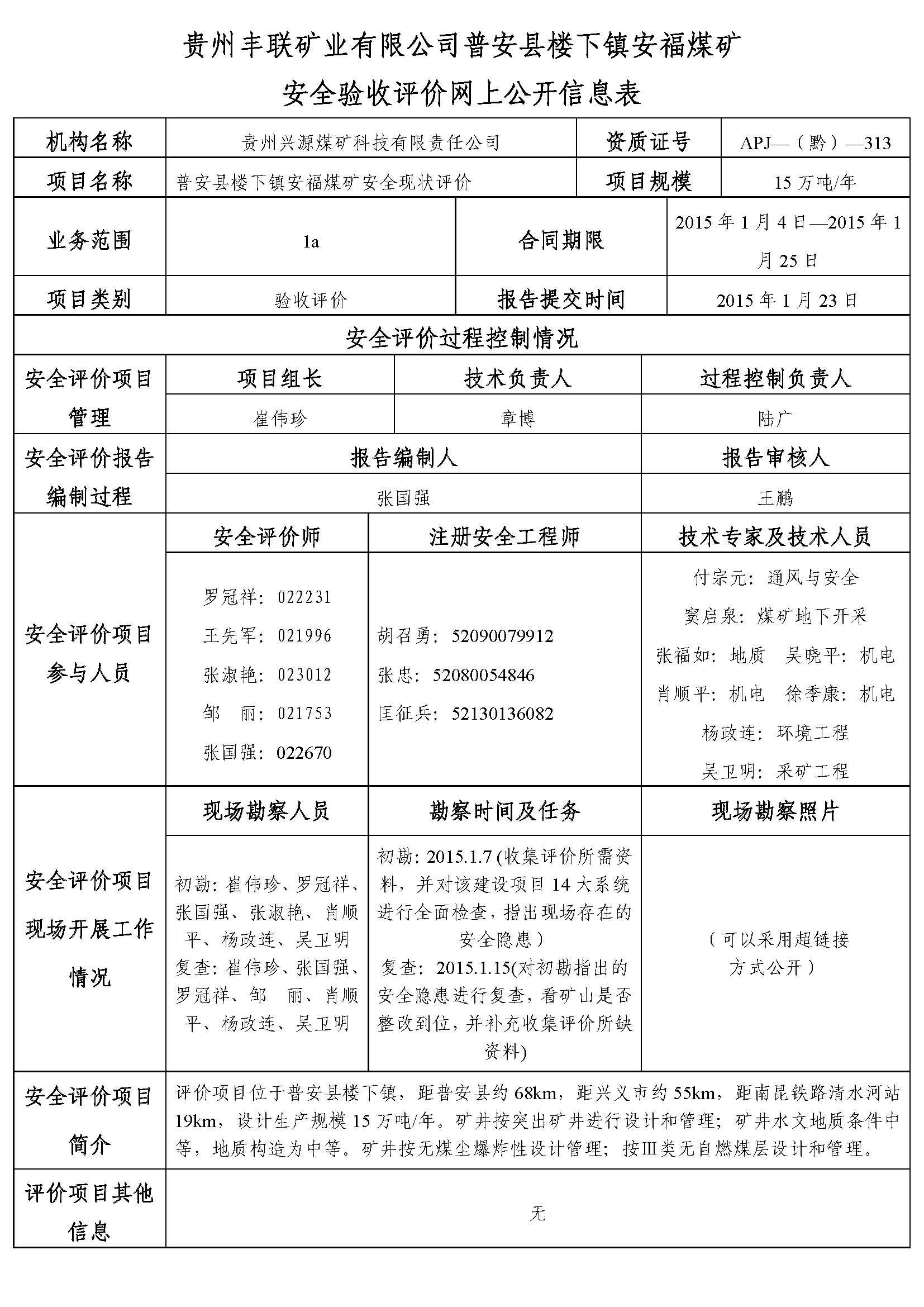 普安縣樓下鎮(zhèn)安福煤礦安全評價業(yè)務(wù)網(wǎng)上公開信息表