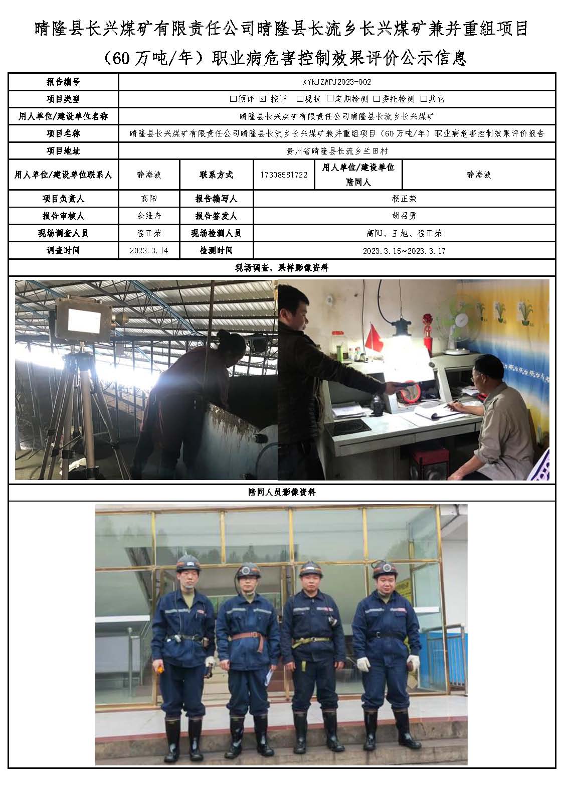 晴隆縣長興煤礦有限責任公司晴隆縣長流鄉長興煤礦兼并重組項目 (60萬噸/年)職業病危害控制效果評價公示信息