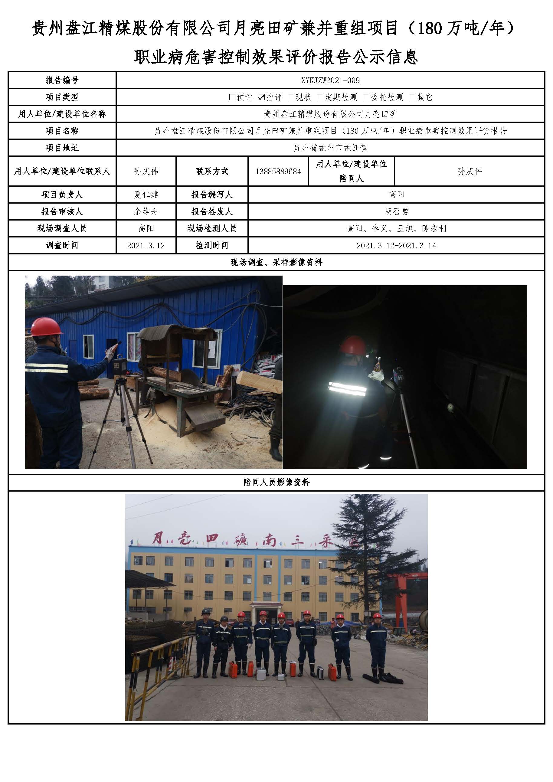 貴州盤江精煤股份有限公司月亮田礦兼并重組項目(180萬噸/年) 職業病危害控制效果評價報告公示信息