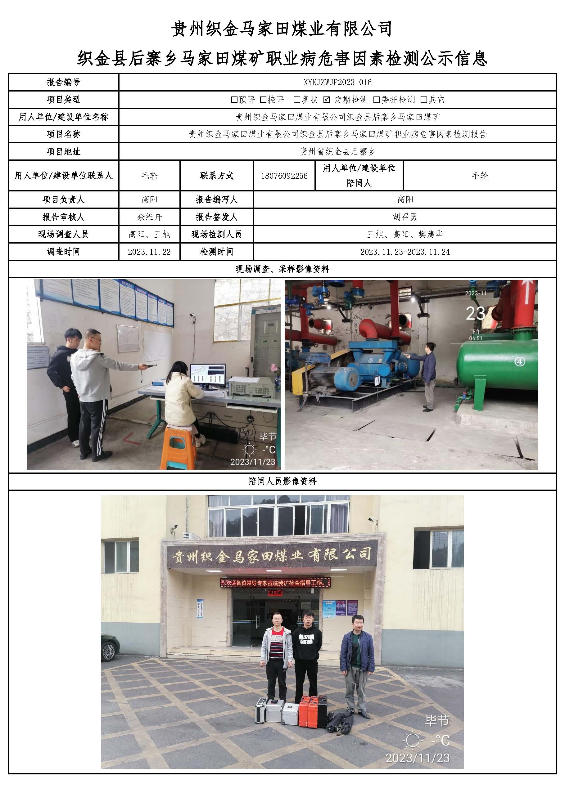 貴州織金馬家田煤業有限公司 織金縣后寨鄉馬家田煤礦職業病危害因素檢測公示信息