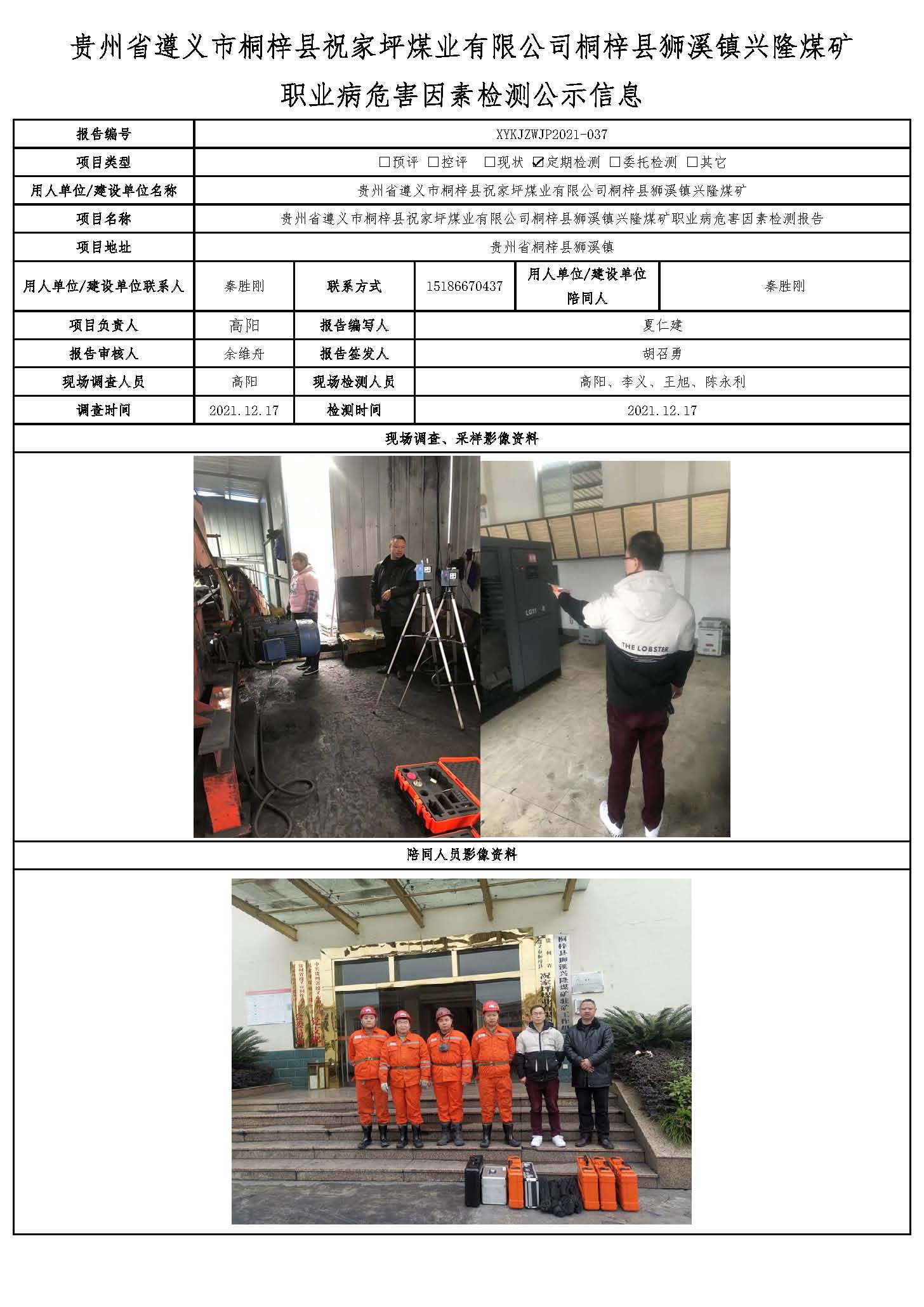 貴州省遵義市桐梓縣祝家坪煤業有限公司桐梓縣獅溪鎮興隆煤礦 職業病危害因素檢測公示信息