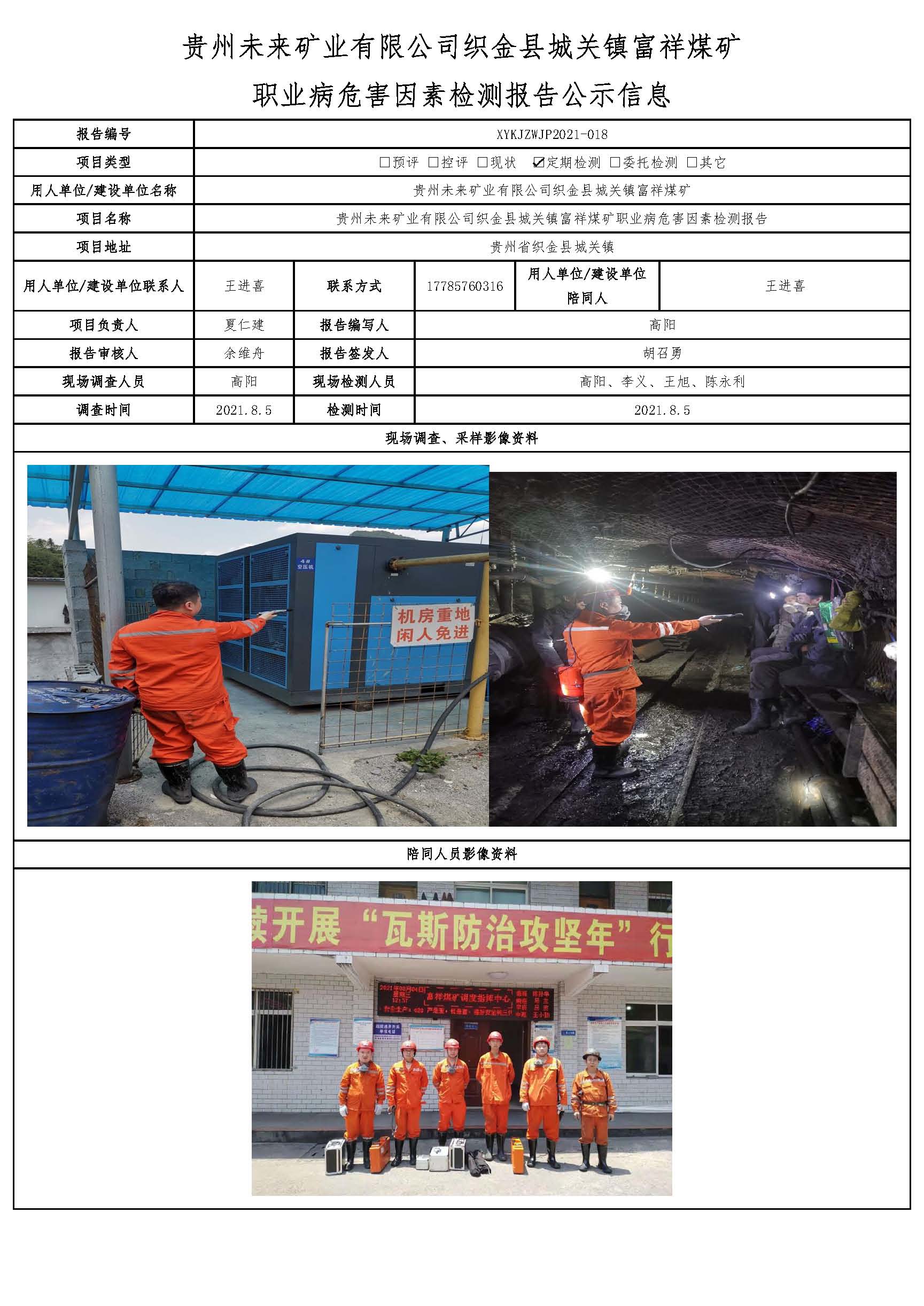 貴州未來礦業(yè)有限公司織金縣城關(guān)鎮(zhèn)富祥煤礦 職業(yè)病危害因素檢測報告公示信息