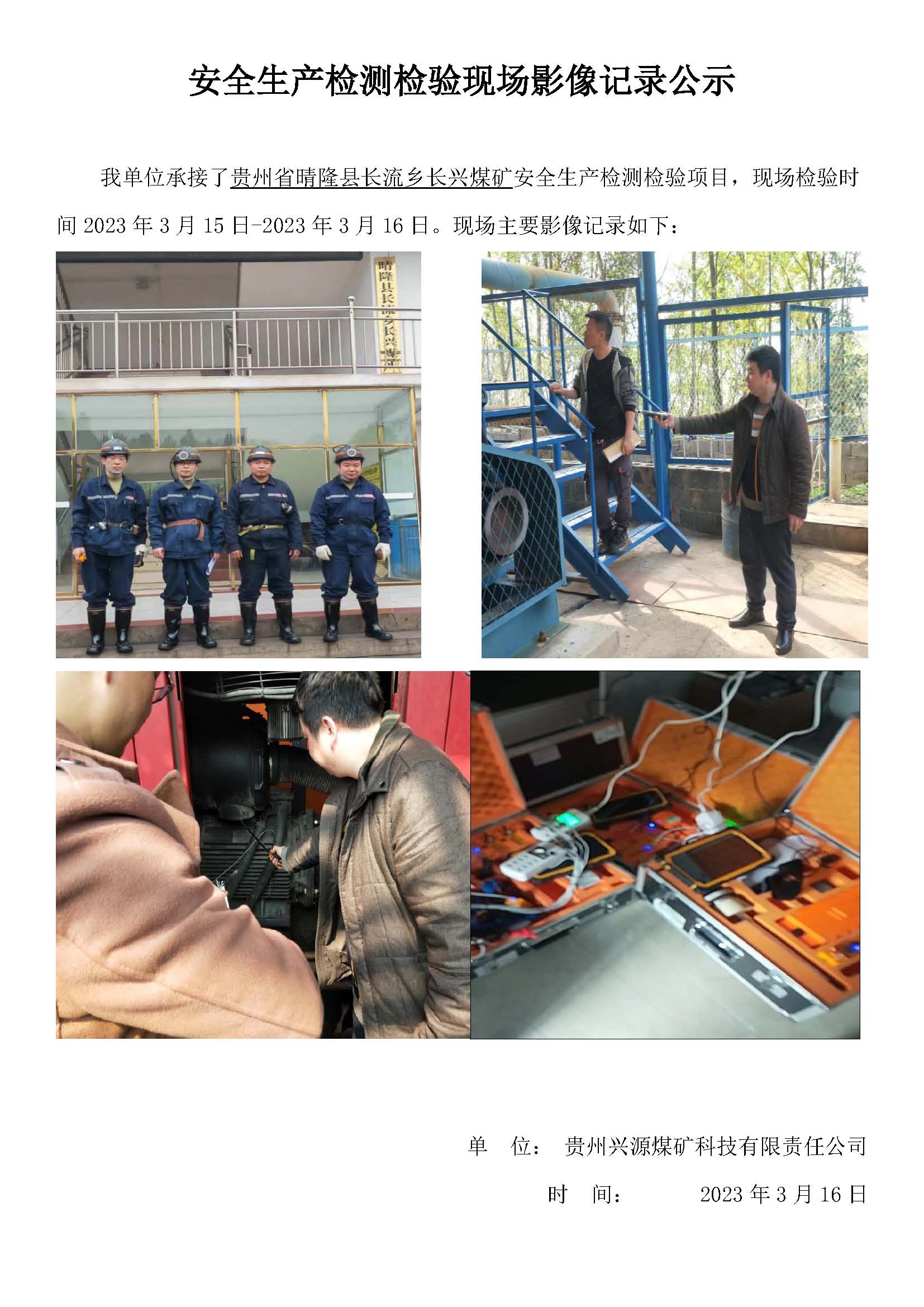 安全生產(chǎn)檢測檢驗現(xiàn)場影像記錄公示【貴州省晴隆縣長流鄉(xiāng)長興煤礦安全生產(chǎn)檢測檢驗項目】
